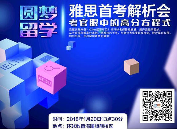 1月雅思变题季雅思考官“变幻莫测”?难以应答,无从下手?如果你被变题季困扰,如果你对出分百般头疼,这些难题统统别担心!宁波环球教育为你“披荆斩棘”↓↓↓