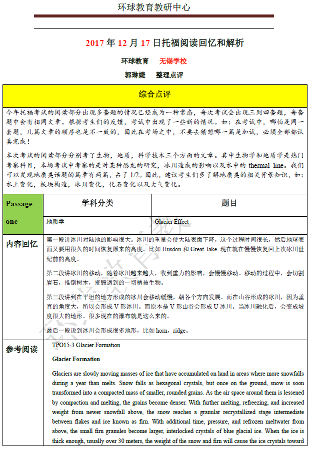 环球教育教研中心为大家整理了2017年12月17日托福考题全部内容:听、说、读、写完整回忆和解析,希望能帮大家更上一层楼。