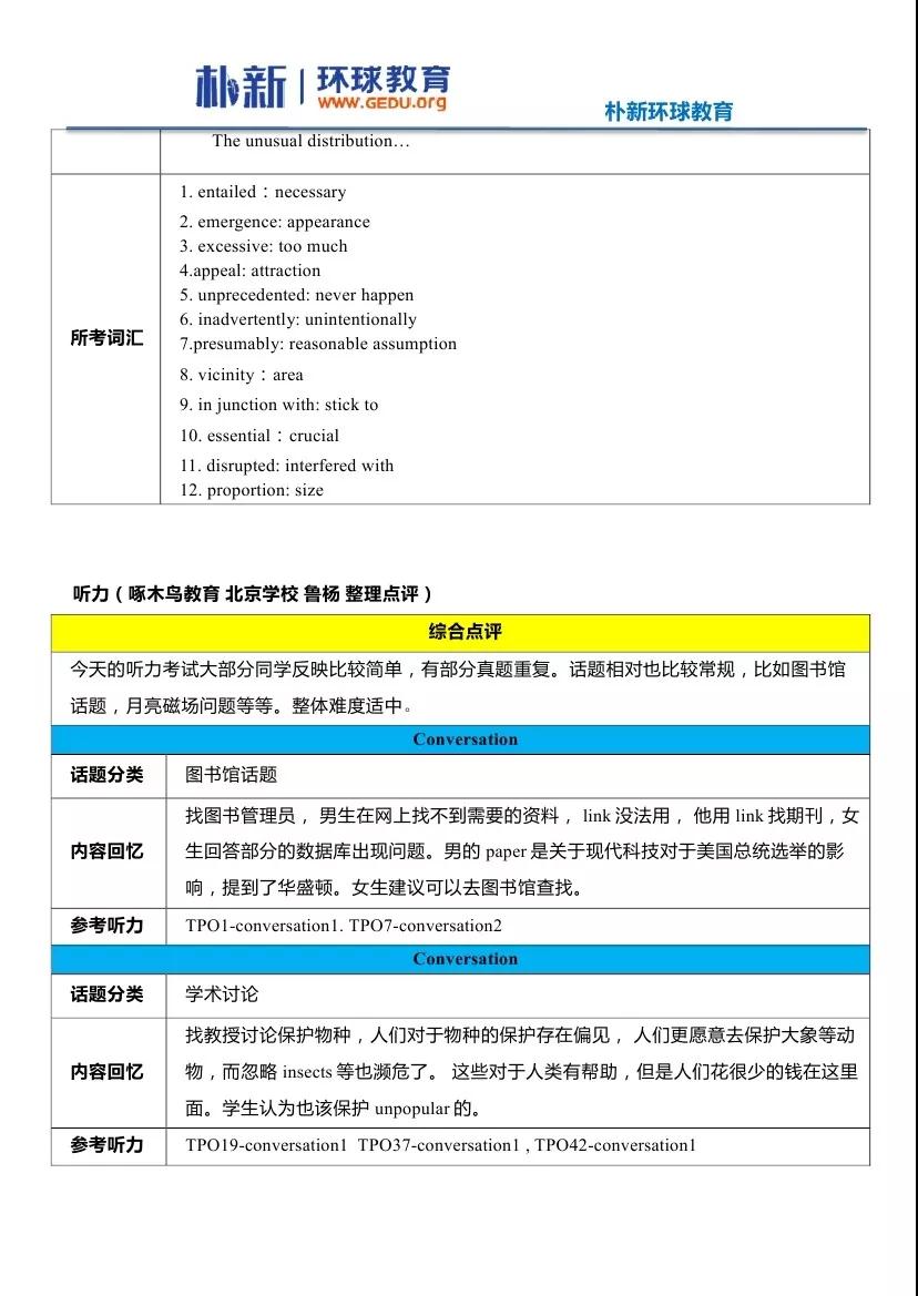 2018年1月13日托福考试听说读写全面解析