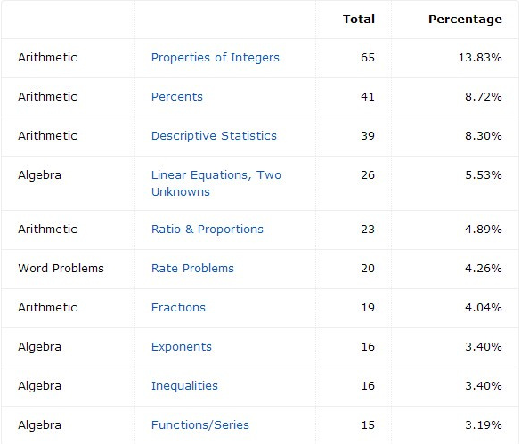 GMAT数学题考点众多,涉及知识面广,对于不少早就把数学丢在脑后的大学在读和毕业生来说,重新捡起这些知识点难度不低,想要面面俱到的全部熟练掌握更是需要花费不少时间精力。GMAT数学考试中,哪些类型的题目出现率最高呢?下面小编就通过统计数据为大家做一些分析介绍。