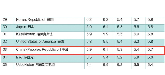 分析:2015年,在全球考生人数最多的40个国家和地区雅思A类成绩排名中,中国大陆以总分5.7分排名第33位,排在泰国、越南、韩国、日本等亚洲国家之后。